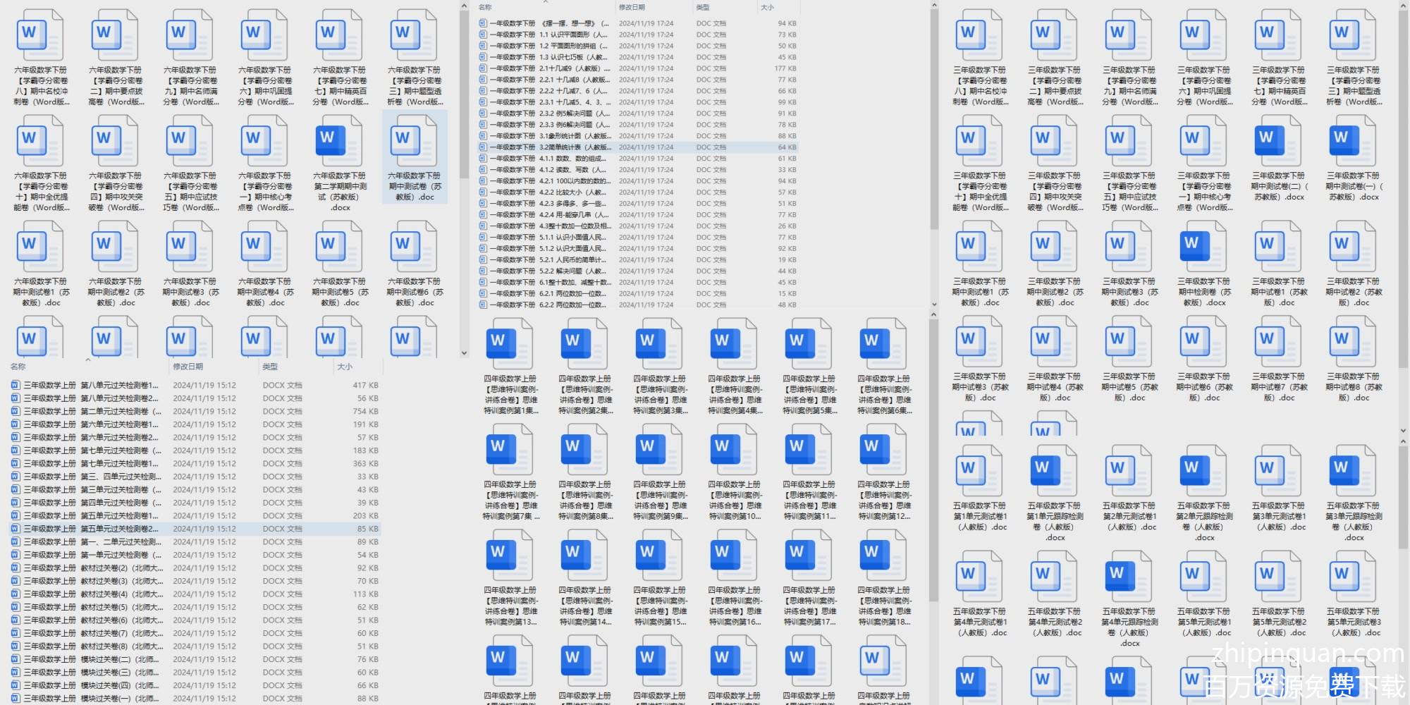 每套试卷题型丰富,既有基础填空、口算/竖式计算,也有灵活选择、判断,还有贴近生活的解决问题(如数物体个数、比多少、买东西算钱),难度从基础巩固到提升应用梯度分布,适合不同层次孩子:基础弱的练牢知识点,基础扎实的拓展思维。