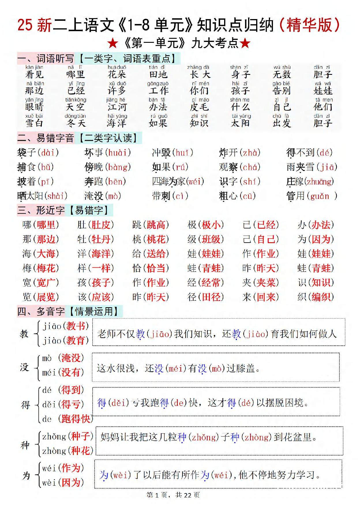 【25新二上语文1-8单元知识点汇总(精华版)九大考点22页.pdf