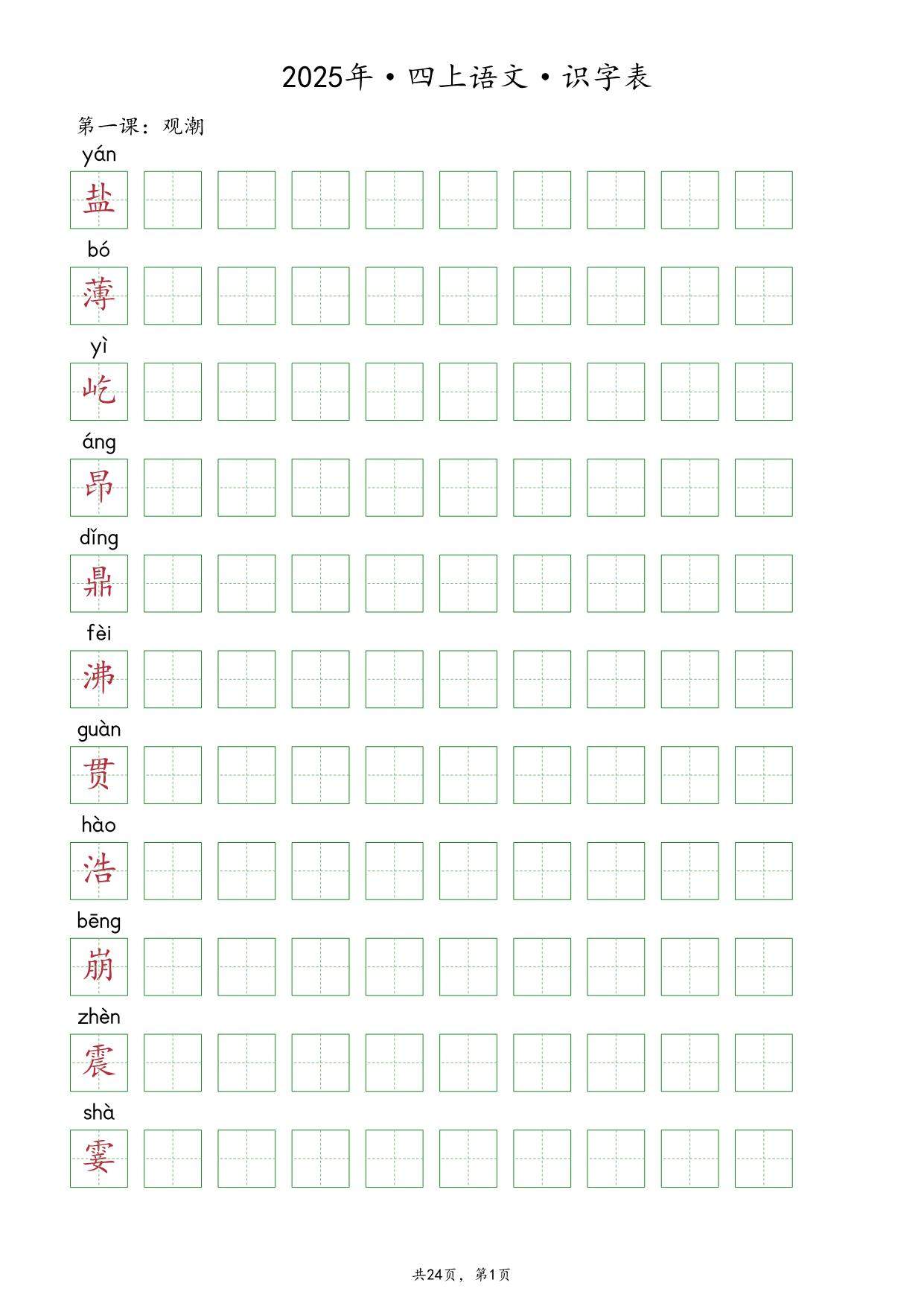 【抄写-识字表】2025年4年级上册语文(24页).pdf