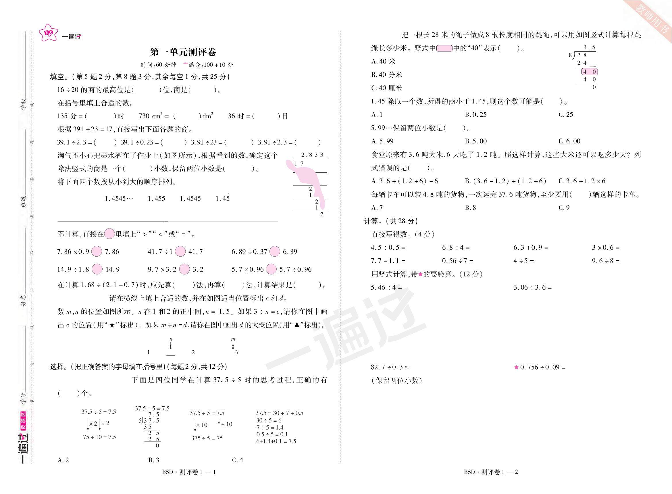2025秋一遍过数学BSD5上单元测评卷.pdf