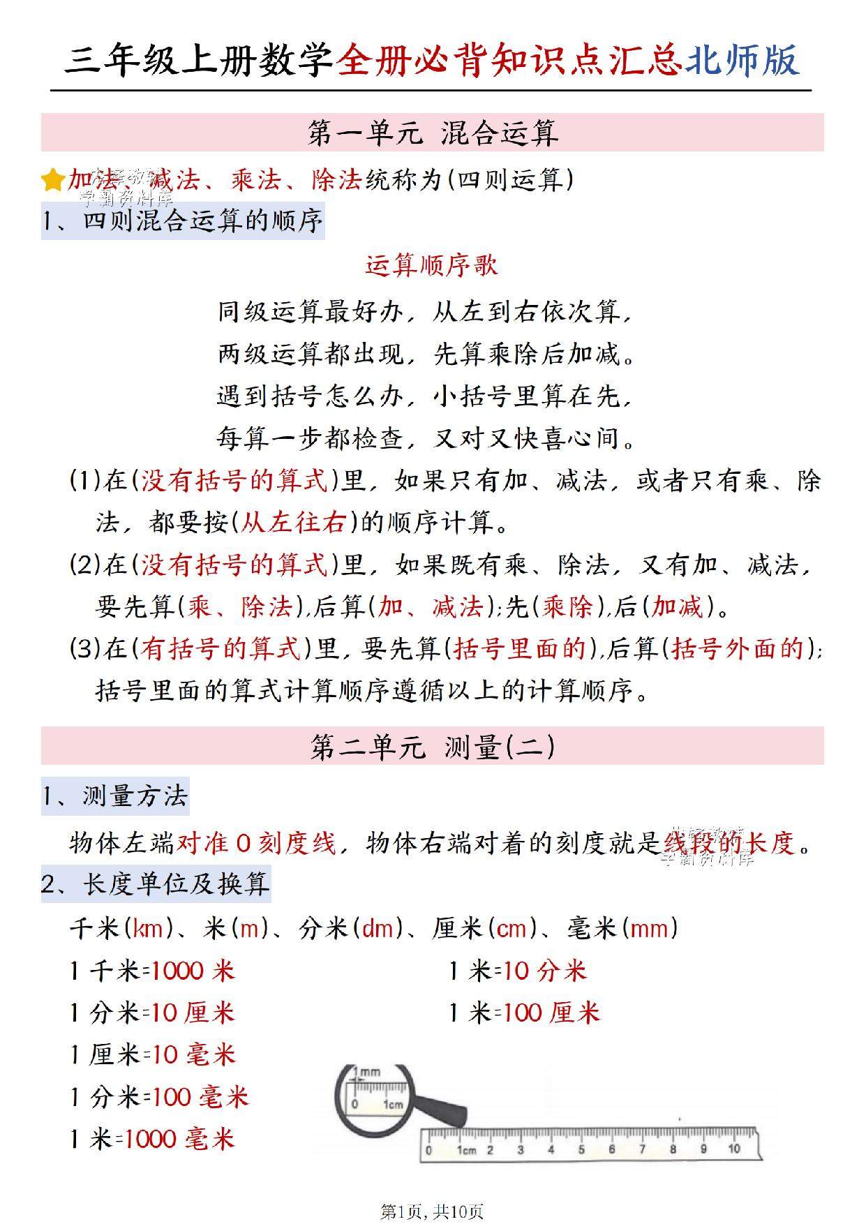 三年级(上)数学全册知识点汇总《北师版》.pdf