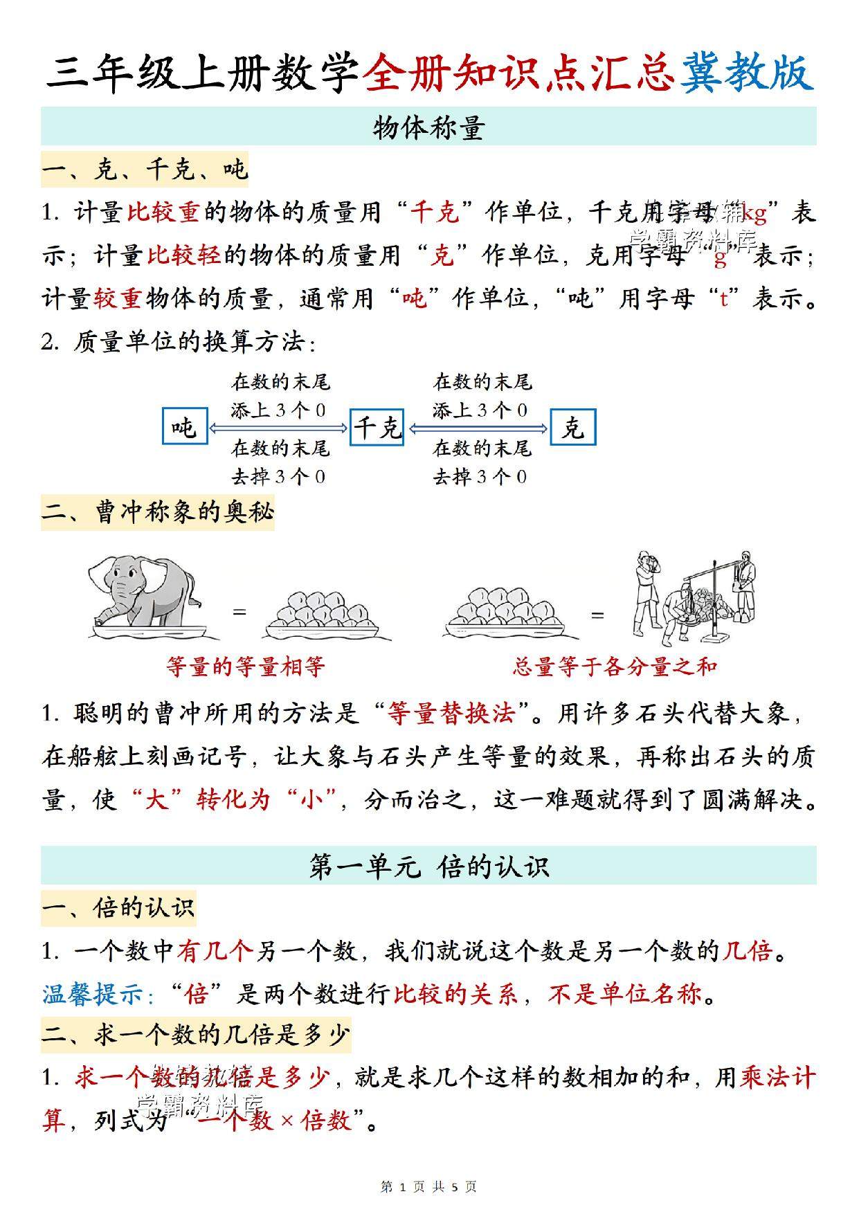 三年级(上)数学全册知识点汇总《冀教版》 .pdf