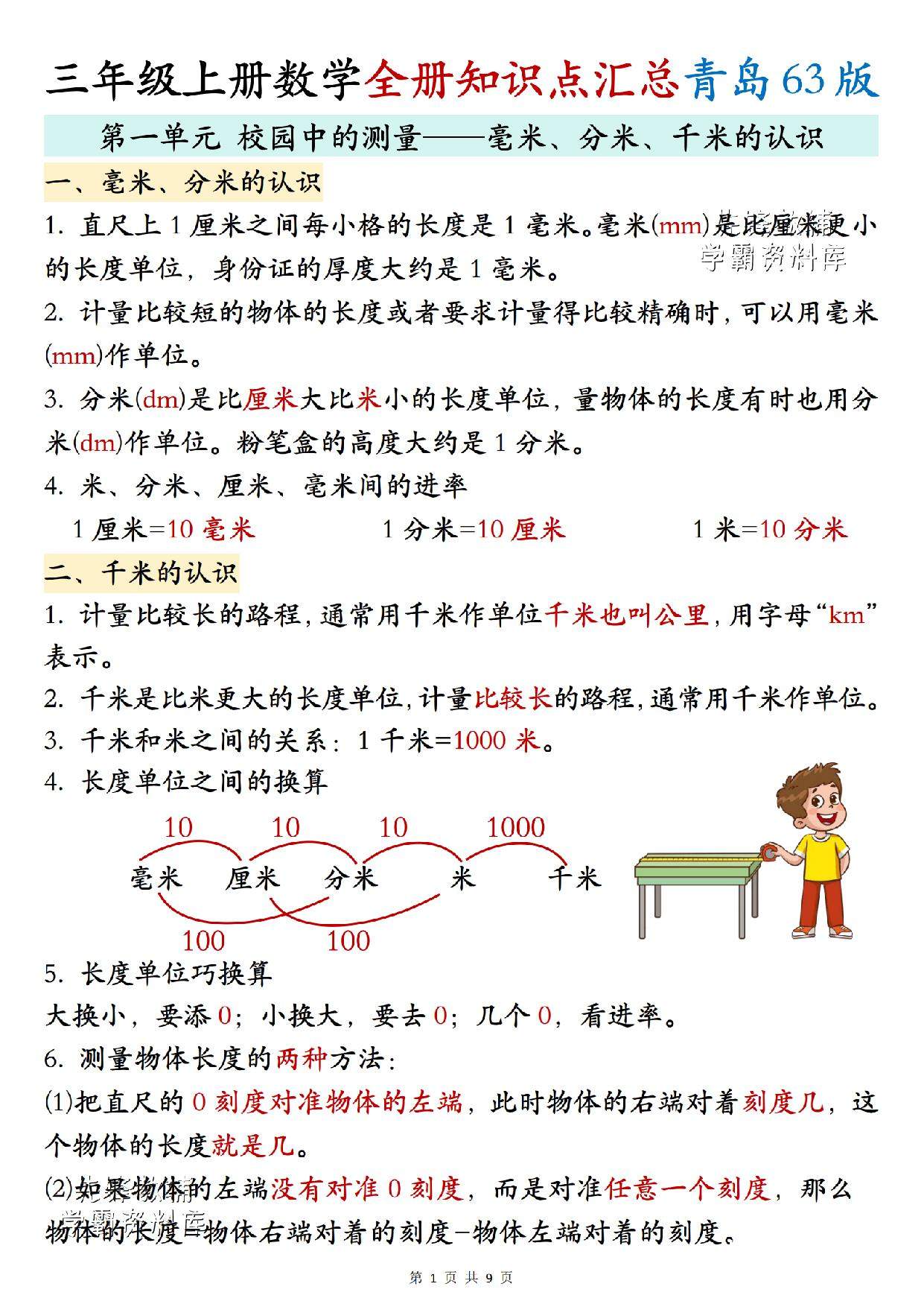 三年级(上)数学全册知识点汇总《青岛63版》 .pdf