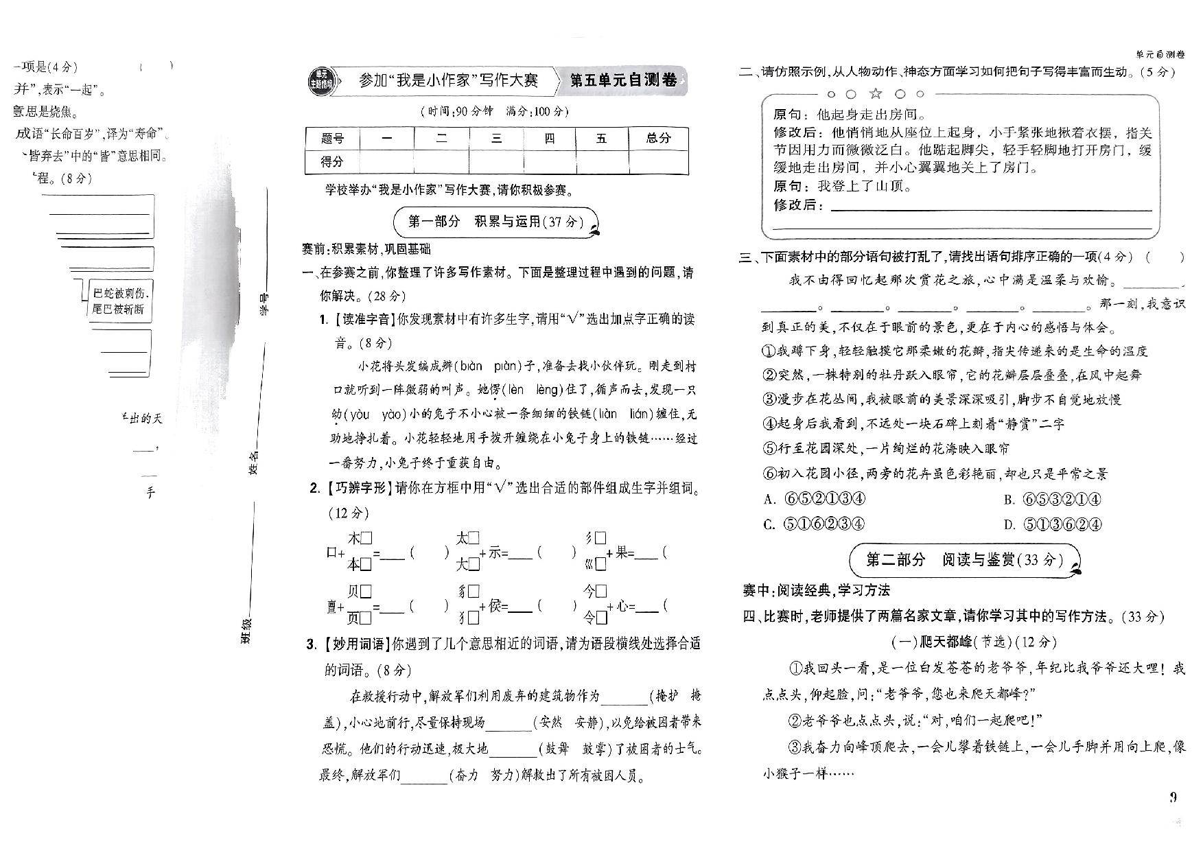 新四上语文五六单元卷(含答案).pdf
