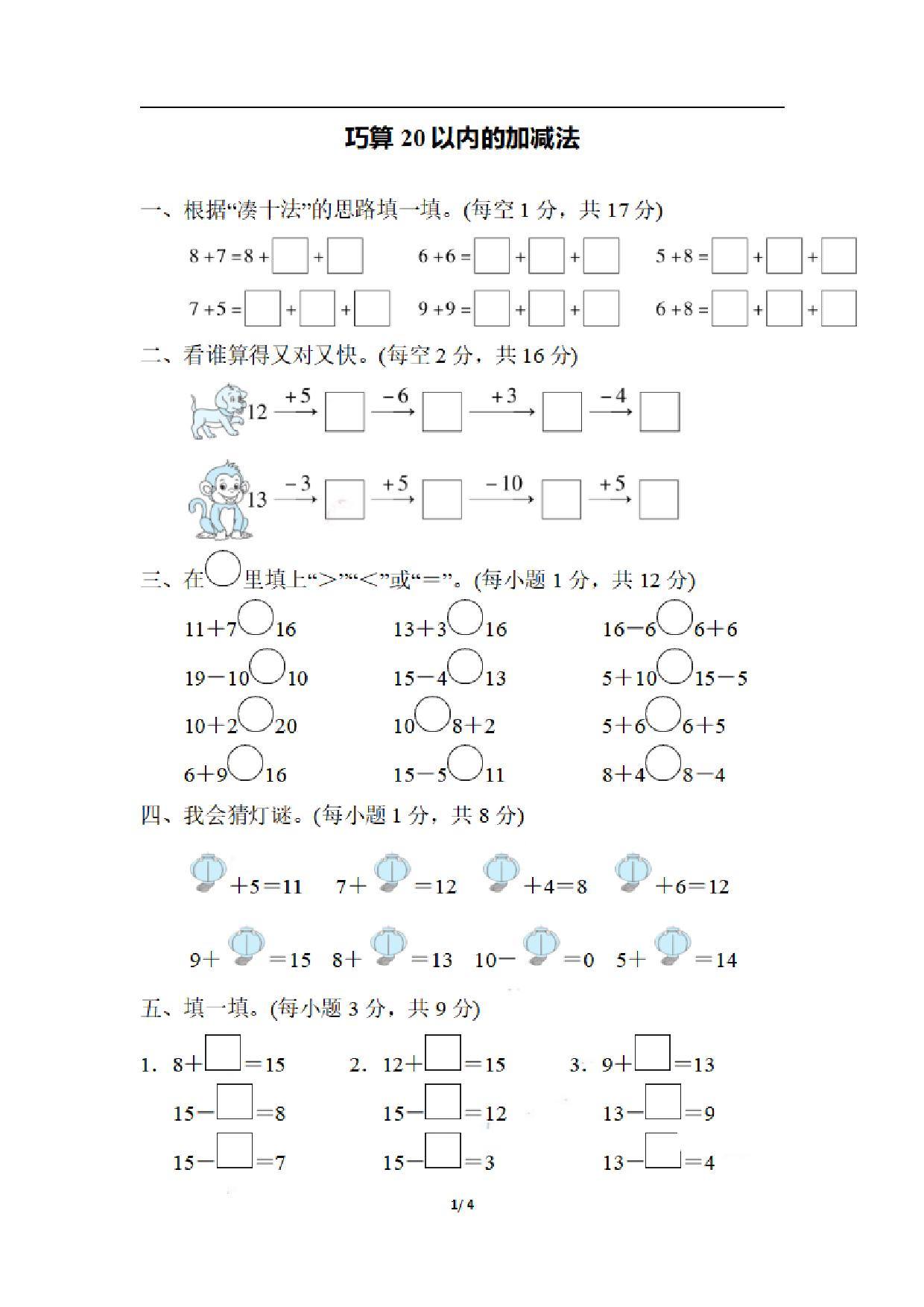 一(上)数学期末:巧算20以内的加减法.pdf