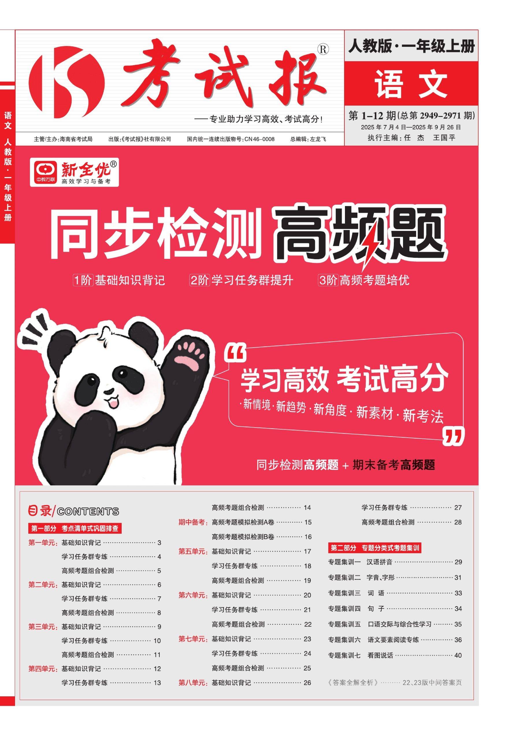 一年级语文上册人教版25秋《考试报同步检测高频题》.pdf