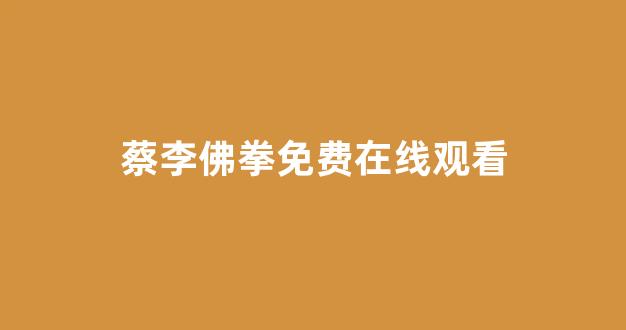 蔡李佛拳免费在线观看